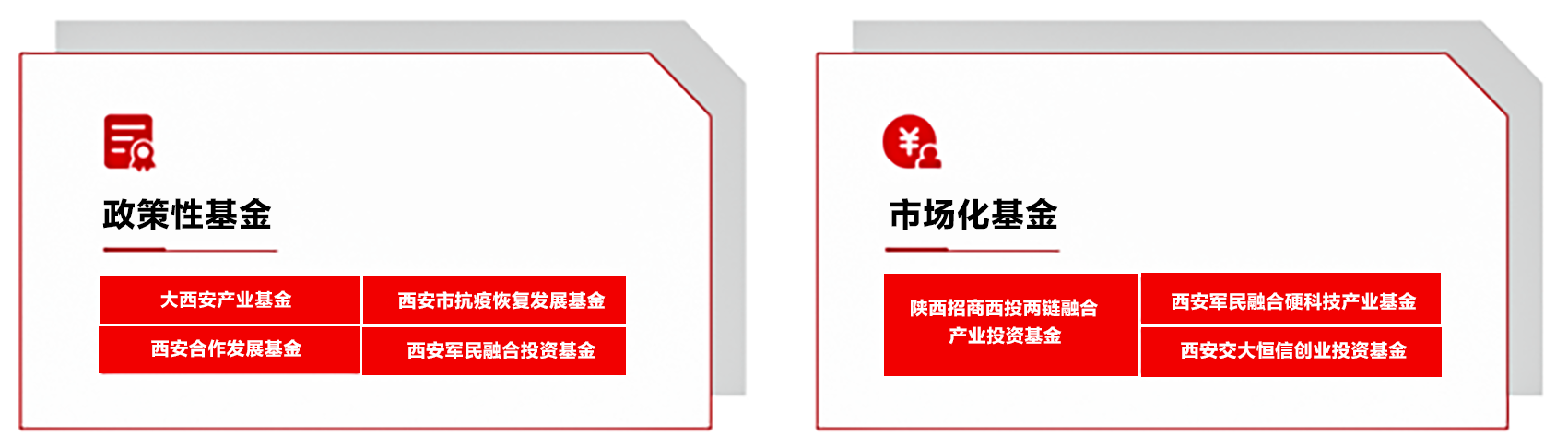 已發(fā)起設(shè)立大西安產(chǎn)業(yè)基金,全國首支兼顧“抗疫紓困”和“產(chǎn)業(yè)發(fā)展”的西安市抗疫恢復(fù)發(fā)展基金、西安合作發(fā)展基金、軍民融合基金等,參與設(shè)立陜西西安國資國企綜合改革試驗(yàn)基金,西安市工業(yè)(支柱產(chǎn)業(yè))倍增基金等,設(shè)立招商西投兩鏈融合基金。